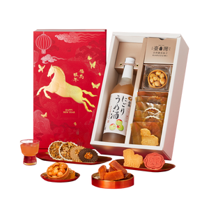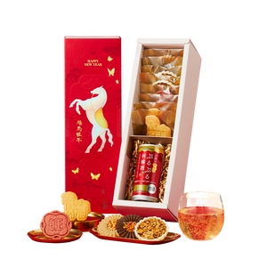一杯好酒,一口甜蜜,一抹鹹香。為精彩的馬年拉開序幕。 春釀與美食相伴,躍上祥駿寶馬。今年必定逆轉勝! 城市好酒「新春酒食禮盒」,靈感源自唐代盛宴儀式,融合宴飲 × 寶馬 × 御膳點心,將春日的美好儀式感盡收其中。